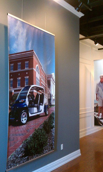 Our printing department has multiple state-of-the-art printers that print on banner, plastic, and vinyl. We are able to print directly onto wood, acrylic, brushed aluminum, glass, mirror and many other unique materials using our newest flatbed printer. Large format digital printing is increasingly becoming more popular. Why buy a picture for a wall when you can have the whole wall as a picture? When a customer comes to us with an idea, we can gladly direct you to your end goal. Helping your business grow and attract more people to your door.